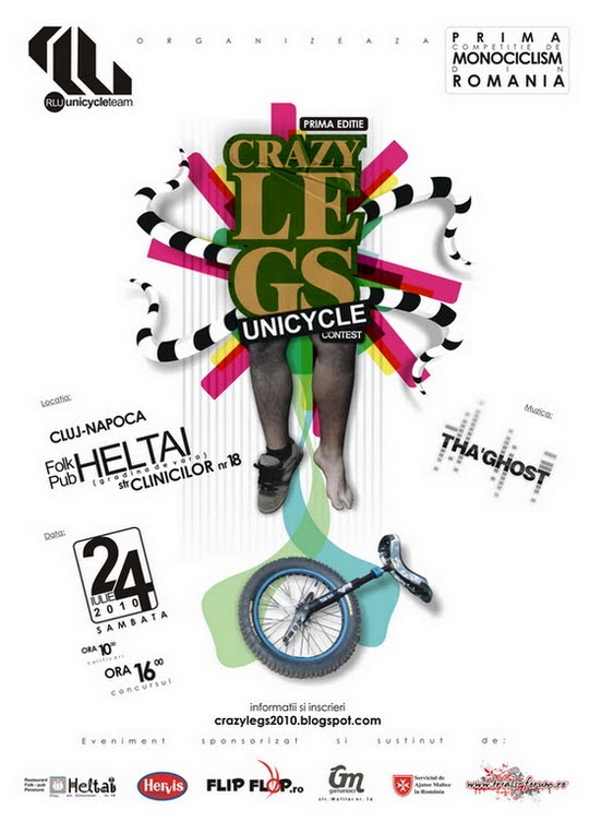 Noi, Red Light Unicycle, vrem sa va adunam pe voi, cei pasionati de monociclism (trial), dar si pe cei care vor sa savureze un spectacol pe o roata, in primul contest de monociclu din Romania-Crazy Legs 2010.